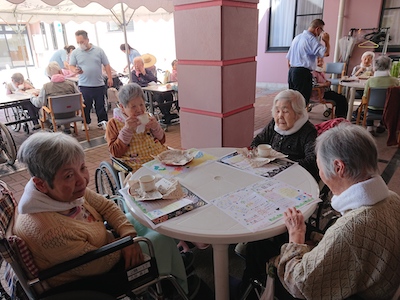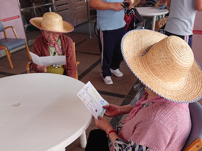 童謡・唱歌・歌謡曲などを歌います。脳トレの一環として塗絵・間違い探し等の課題を行っています。