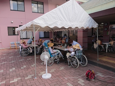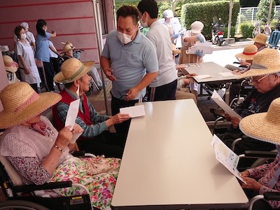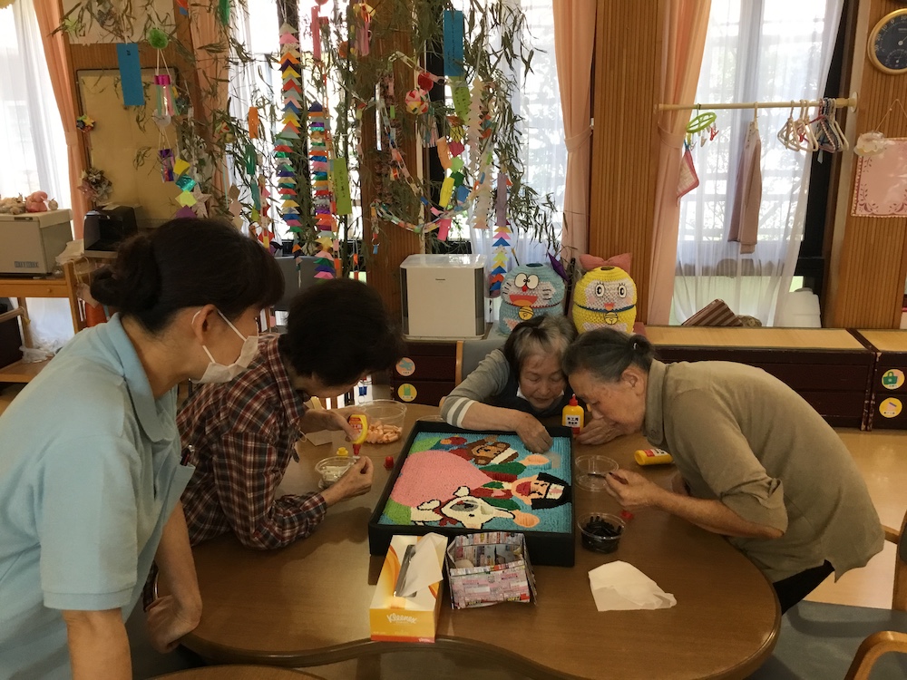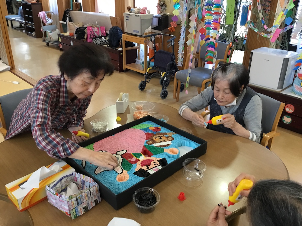 入居者の皆様に楽しく参加していただいております。五感に良い刺激になるよう思いを込めて、援助しております。