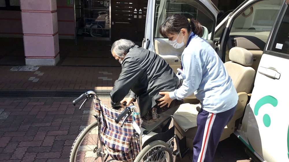 9:00頃にご自宅までお迎えに伺います。乗降車は一人ひとりの身体状態に応じてスタッフがお手伝いします。