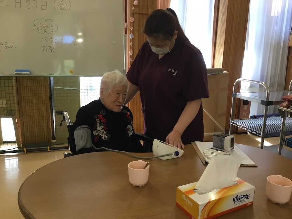 看護師による血圧・体温・脈の測定をおこないます。また、毎月体重測定もおこないます。